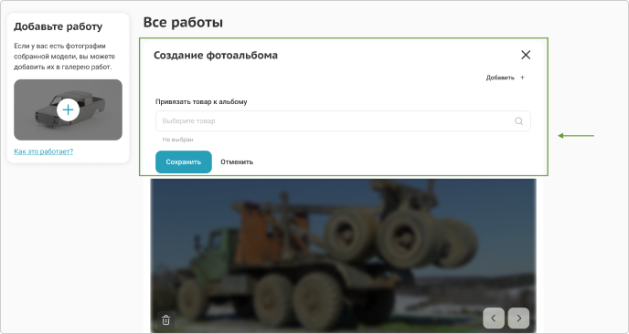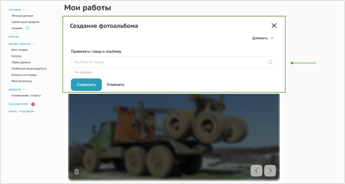 Добавление и привязка фотоальбома к товару в Личном кабинете