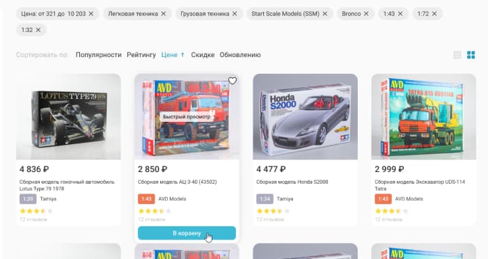 Выберите заинтересовавший товар, укажите нужное количество и добавьте