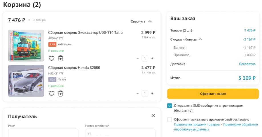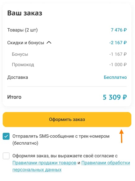 по смс, если необходимо, и нажмите «Оформить заказ».